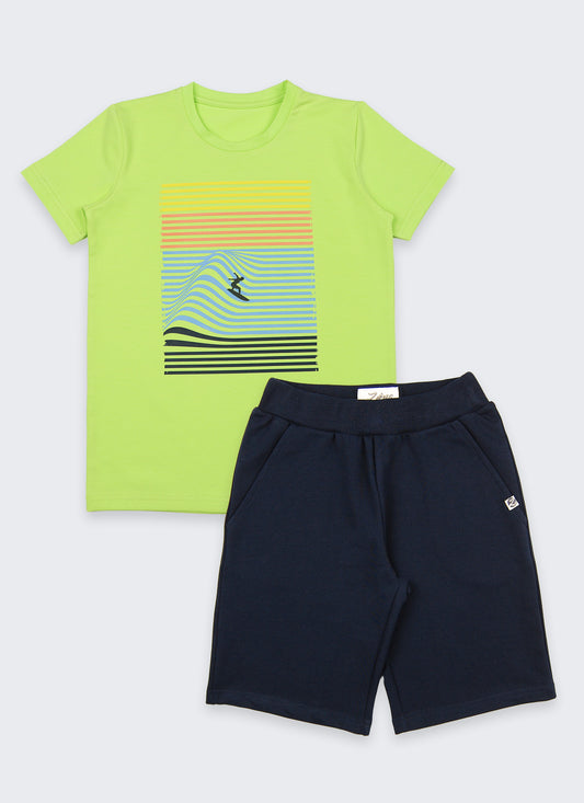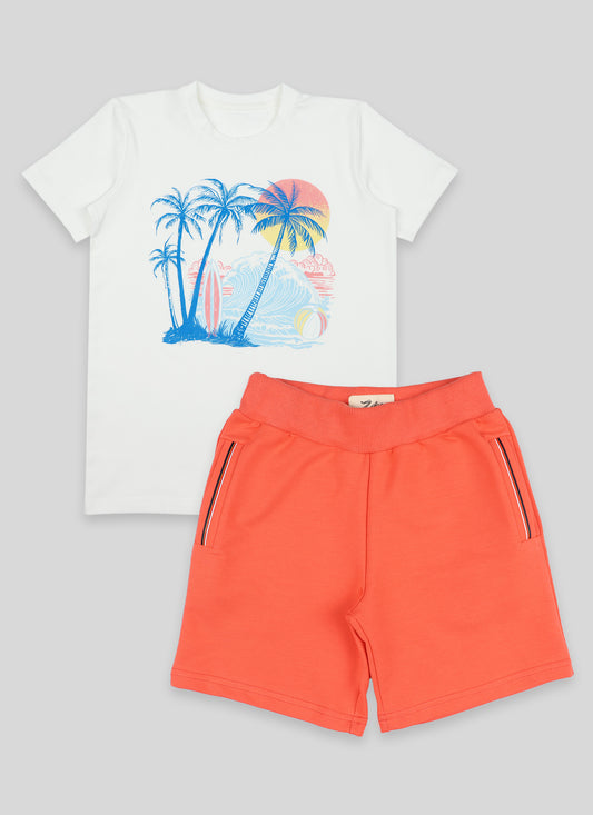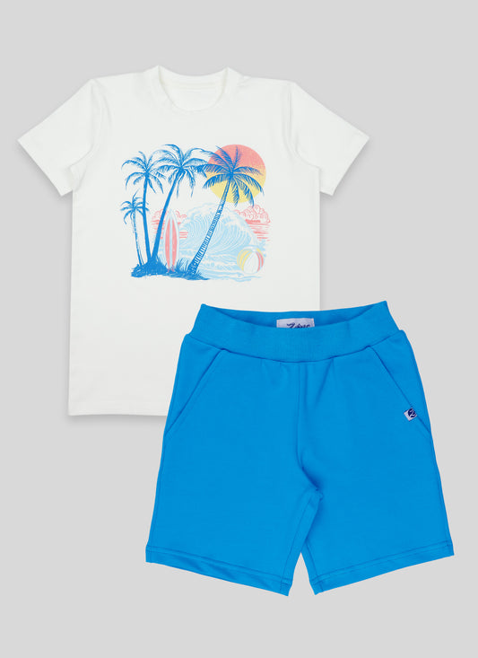 К-т тениска с плажен принт и къс панталон (122 - 158)