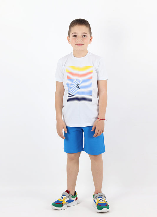 К-т тениска с плажен принт и къс панталон с цветни ленти