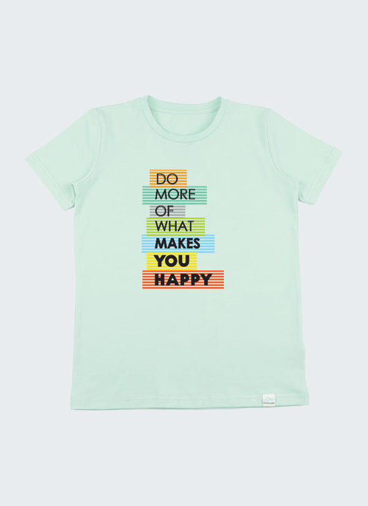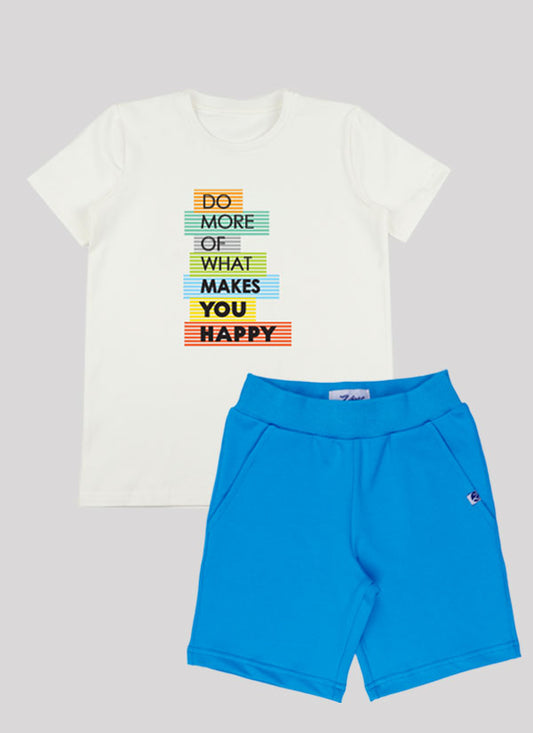 • Тениска с цветен принт и къс панталон с цип е комплект от тениска с класическа кройка и принт с послание "Прави повече от това, което те прави щастлив" в цвят млечна мента и класически къс панталон с ципове на джобовете в цвят бг зелен, Момчета 3 - 10 години, Zinc