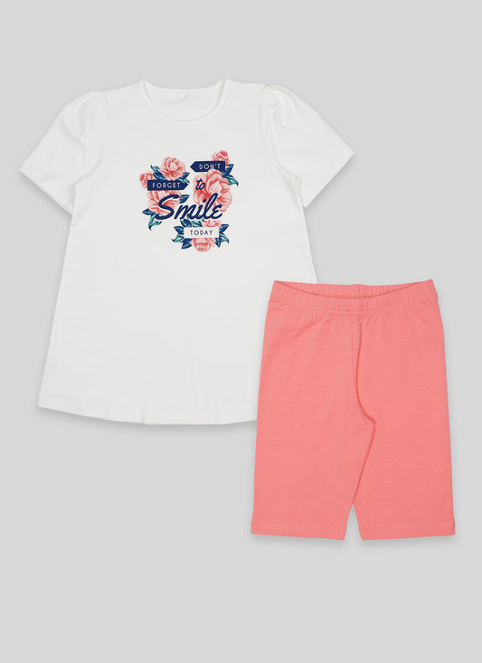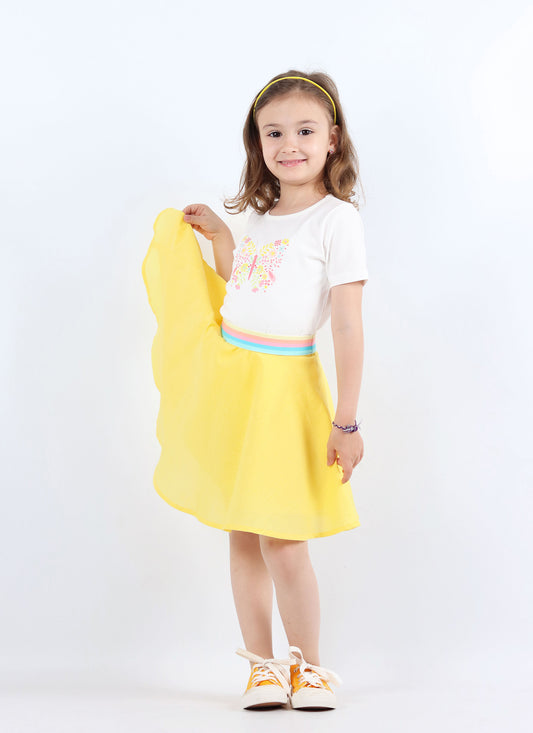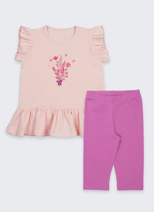 К-т тениска и пола с тюл- пудра и праскова (104 - 128)