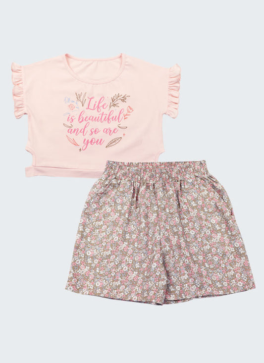 К-т блуза с принт и къс панталон на цветя