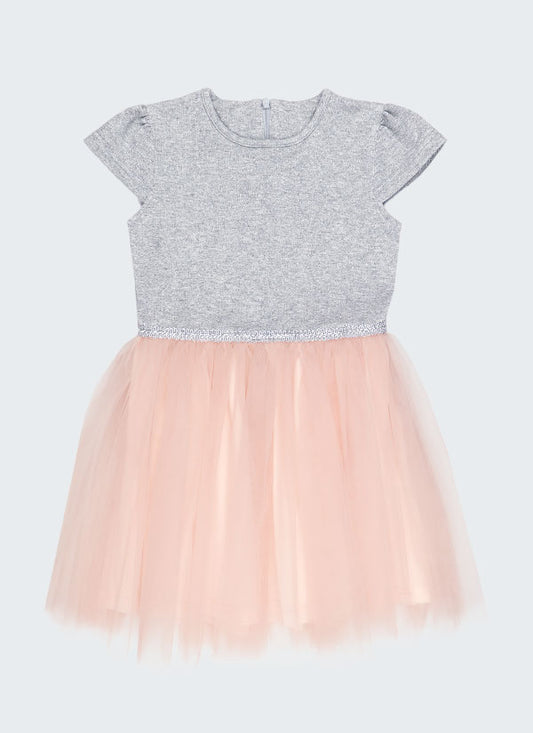 Рокля с тюл в сребристо и пудра, р-ри: 104, 128