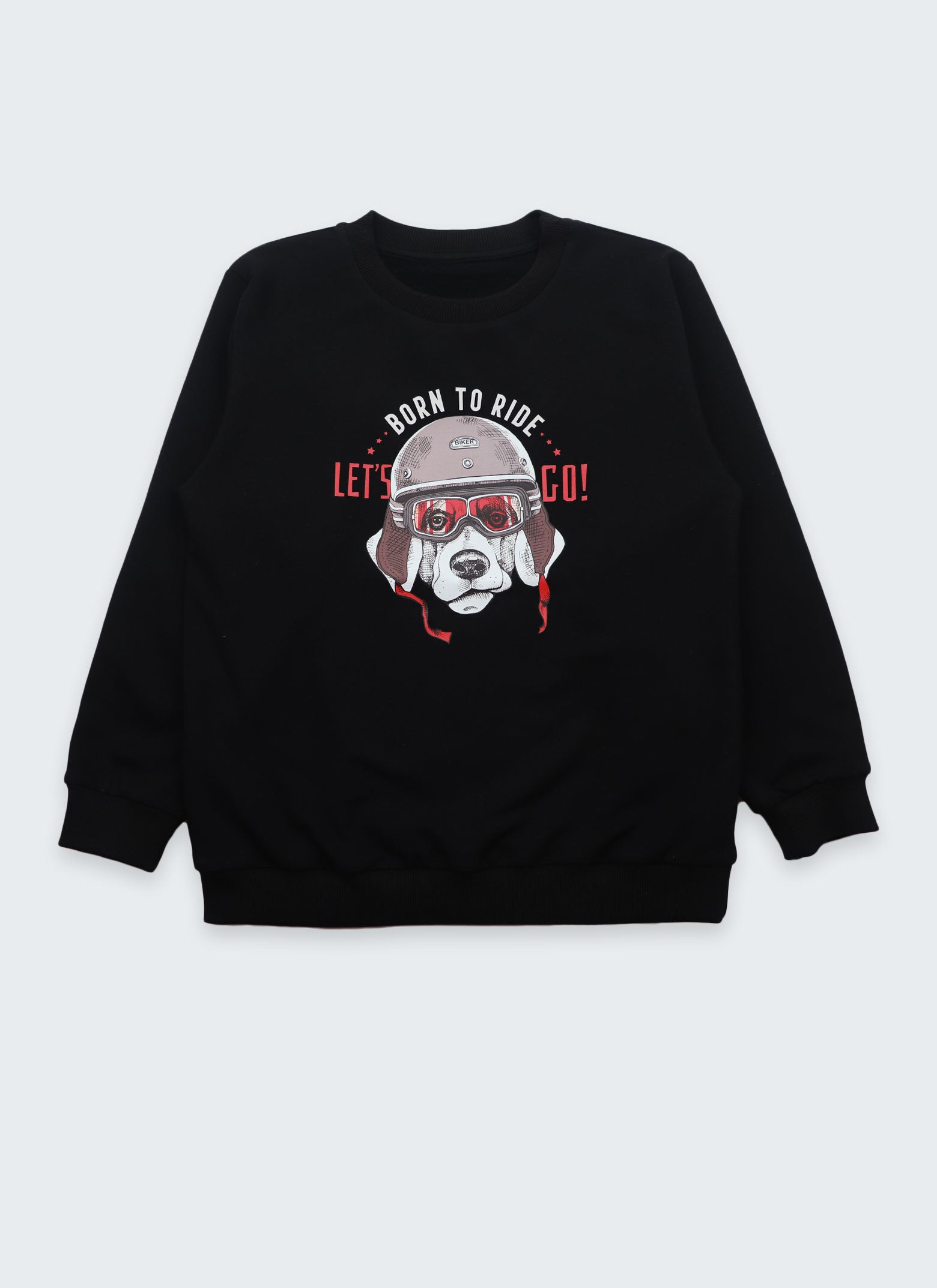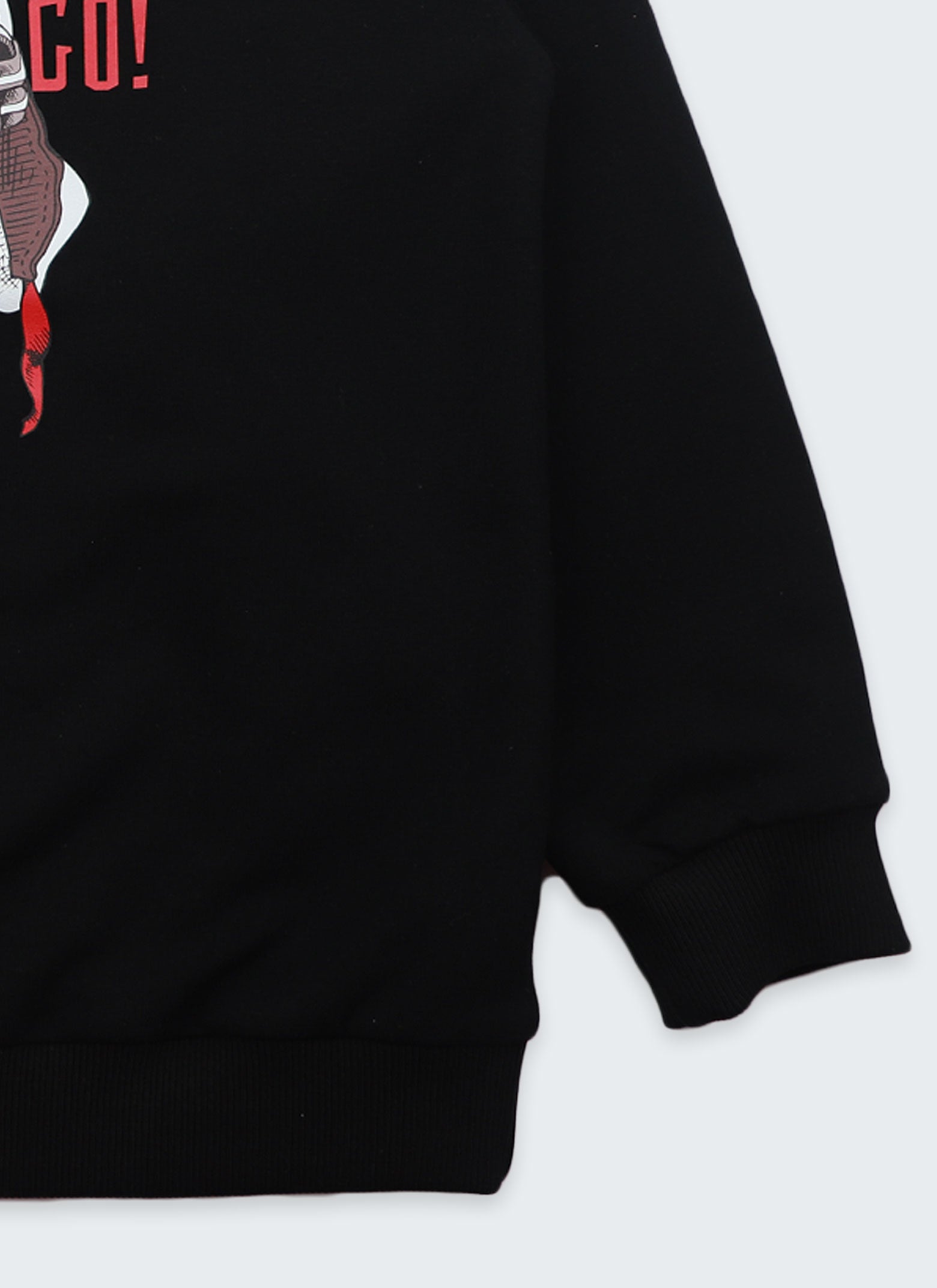 Черен ватиран суитшърт сме направили от мек и топъл сертифициран памук с OEKO-TEX Standard 100. Материалът се нарича кардирана йога вата, което го прави много подходящ за студените зимни дни. Добавихме любим принт с куче за настроение и усмивки. Удобен и стилен за училище и щури игри. Избрахме червен цвят, който лесно да комбинирате с джинси, спортни панталони и долнища.