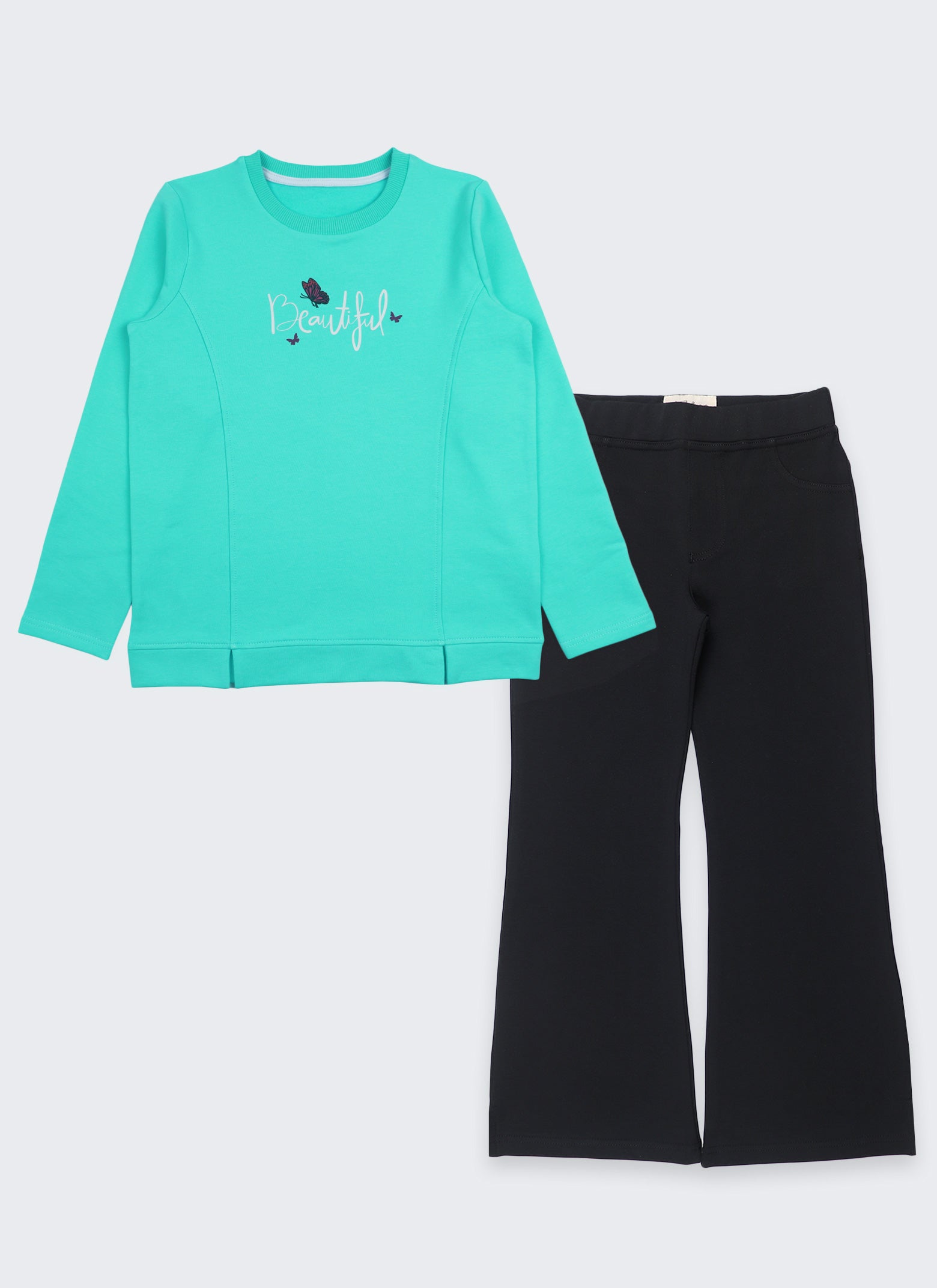 К-т ватирана блуза и клоширан клин-панталон e изключително топъл и комфортен, което го прави подходящ за студените дни. Изработен е от мек сертифициран памук, OEKO-TEX Standard 100. Блузата е с прав силует и с нежен принт. В комбинация с така модерния клоширан клин-панталон имате удобен комплект за училище или щури игри навън.