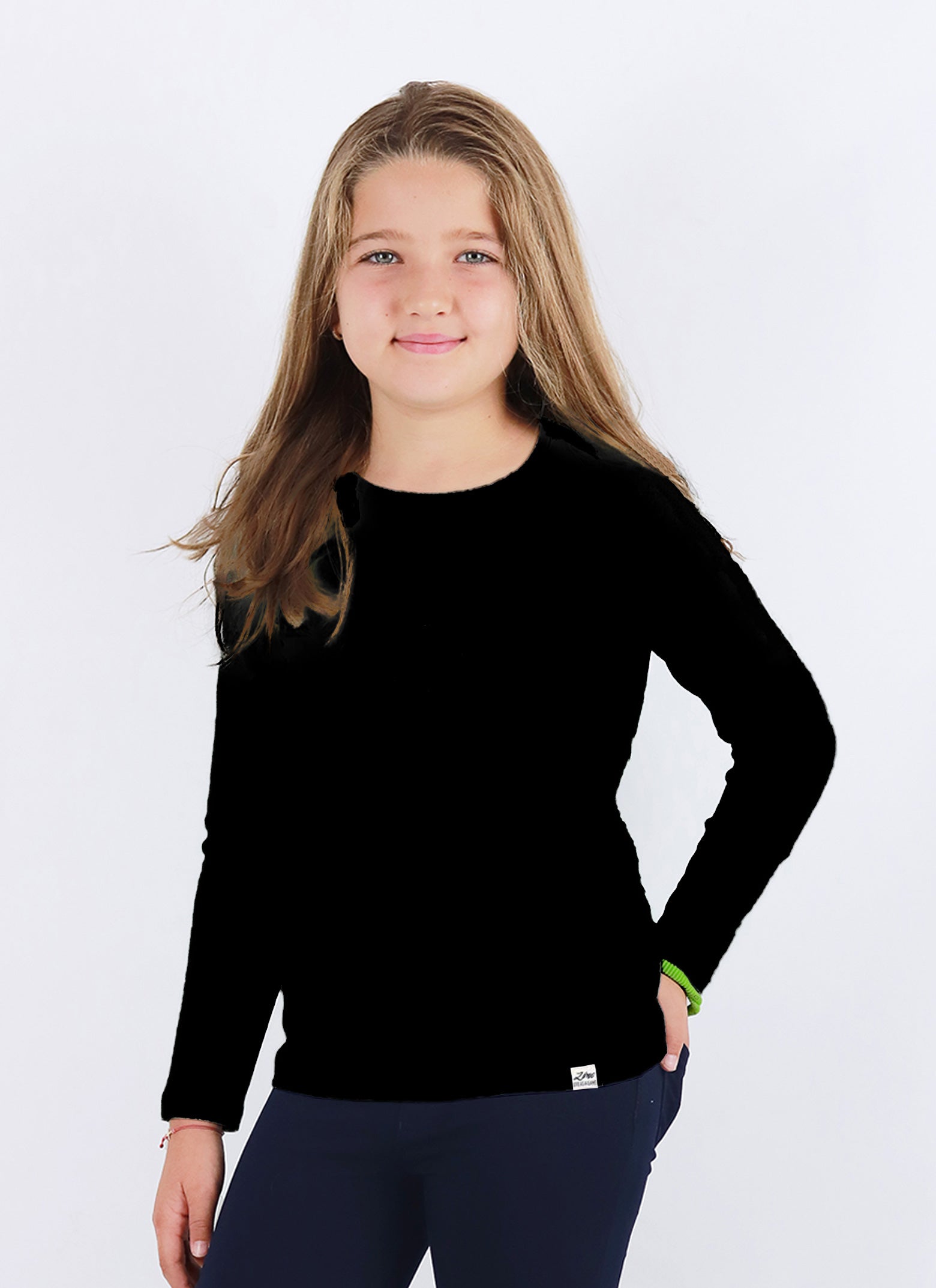 Класическа блуза от мек и приятен сертифициран с OEKO-TEX Standard 100 памук. Винаги имаме нужда в гардероба си от изчистена блуза в черен цвят, която лесно да се комбинира с всяка дреха и в различен стил. През по-студените дни обличаме блузата под суитшърти и пуловери. През по-топлите дни съчетаваме с дънки или къси панталони.