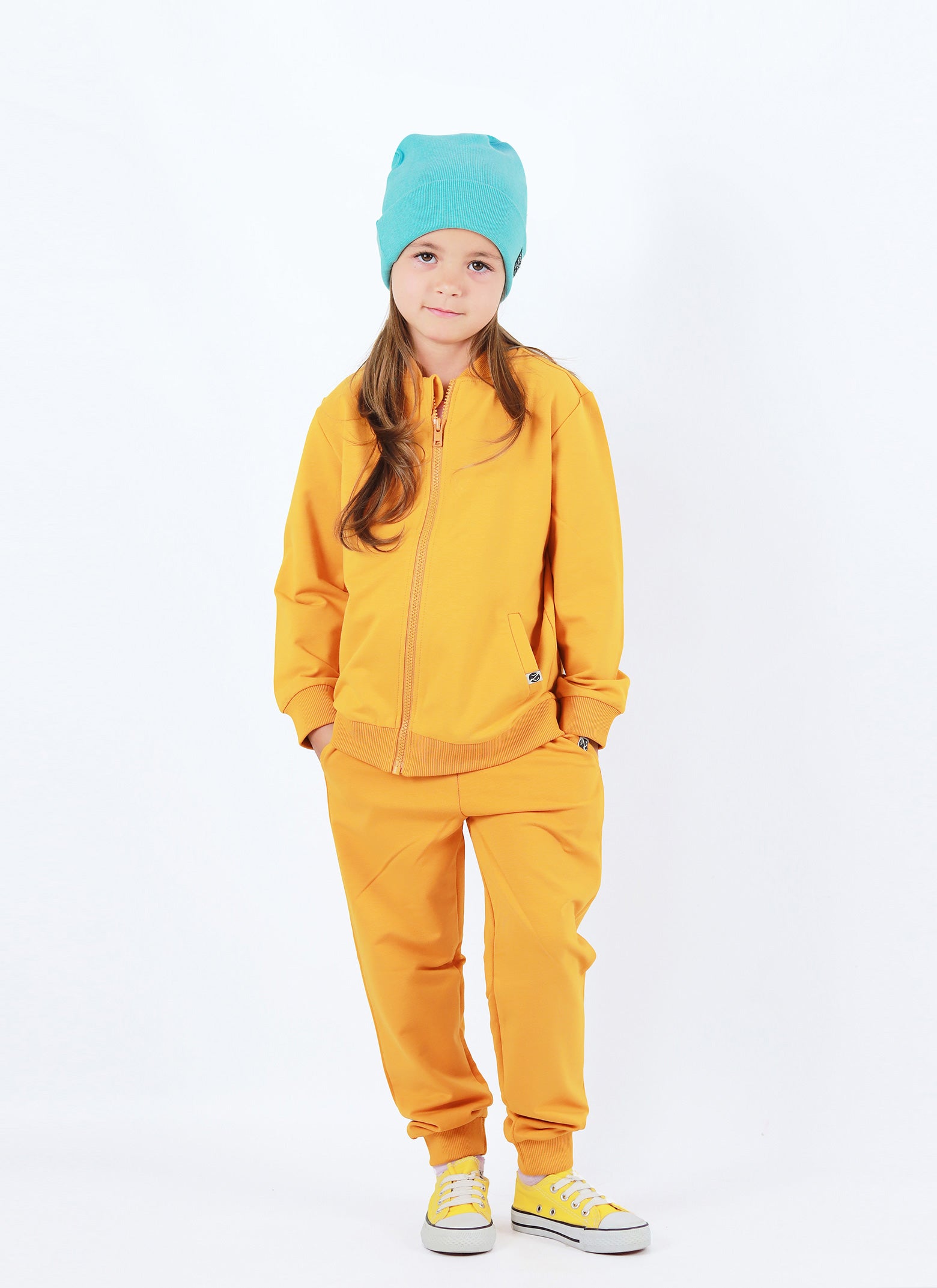 Класически комплект от суитшърт и долнище е направен от мек и много издръжлив сертифициран памук, OEKO-TEX Standard 100. Платът не позволява разтегляне и развличане при коленете и лактите, което прави комплекта много подходящ за спорт, разходки и безкрайни игри. Избрахме да направим суитшърта с яка и така да се ползва и като леко есенно яке. Съчетавайте го с дънки, спортни панталони и клинове.