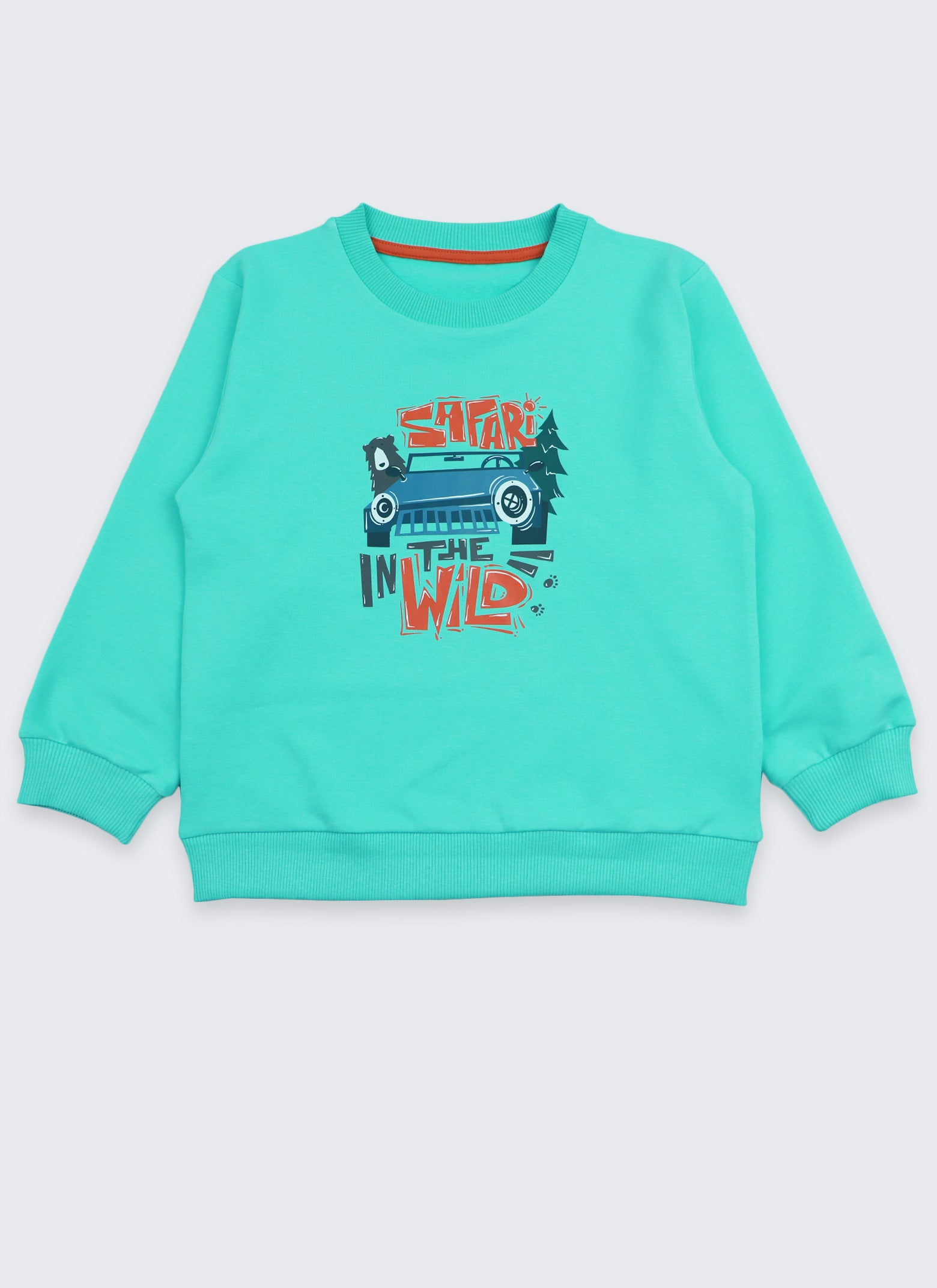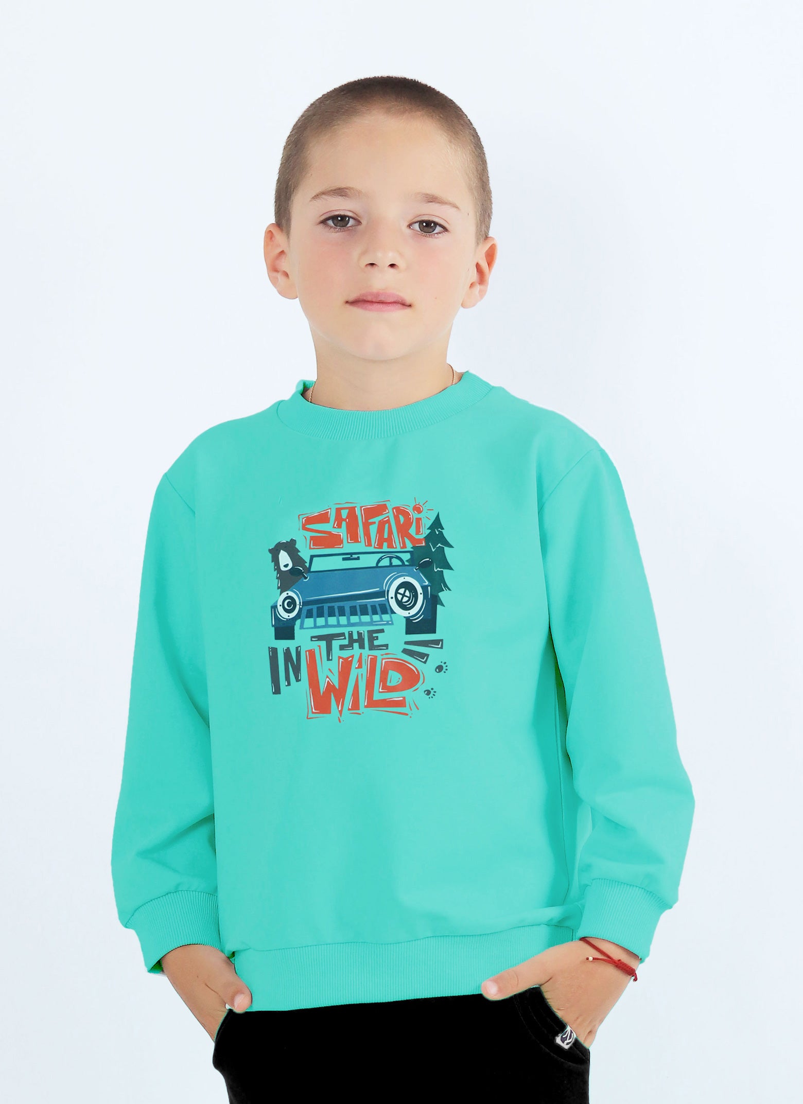 Ватиран суитшърт с принт "Safari" направихме от мек и топъл сертифициран памук с OEKO-TEX Standard 100. Материалът се нарича кардирана йога вата, което го прави много подходящ за студените зимни дни. Добавихме забавен принт за настроение и усмивки. Удобен и стилен за училище и щури игри. Избрахме цвят мента, който лесно да комбинирате с джинси, спортни панталони и долнища.