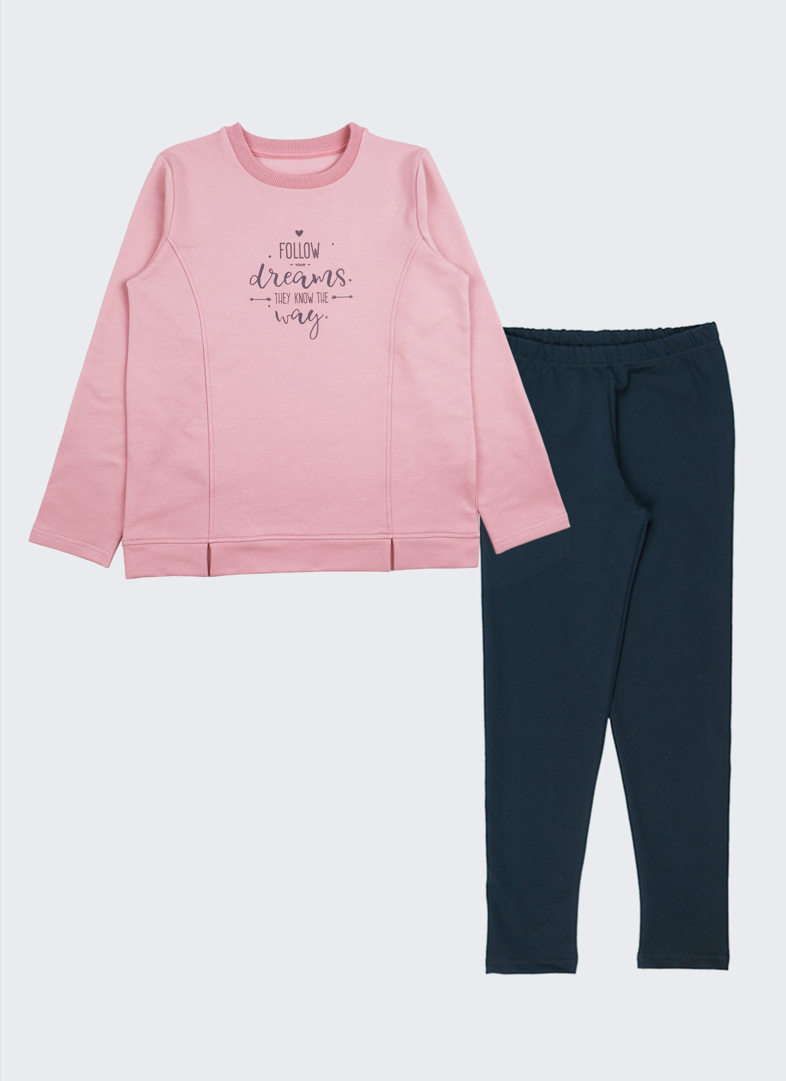 К-т ватирана блуза и клин e изключително топъл и комфортен, което го прави подходящ за студените дни. Изработен е от мек сертифициран памук, OEKO-TEX Standard 100. Блузата е с прав силует и с нежен принт. В комбинация с клин имате удобен комплект за училище или щури игри навън.