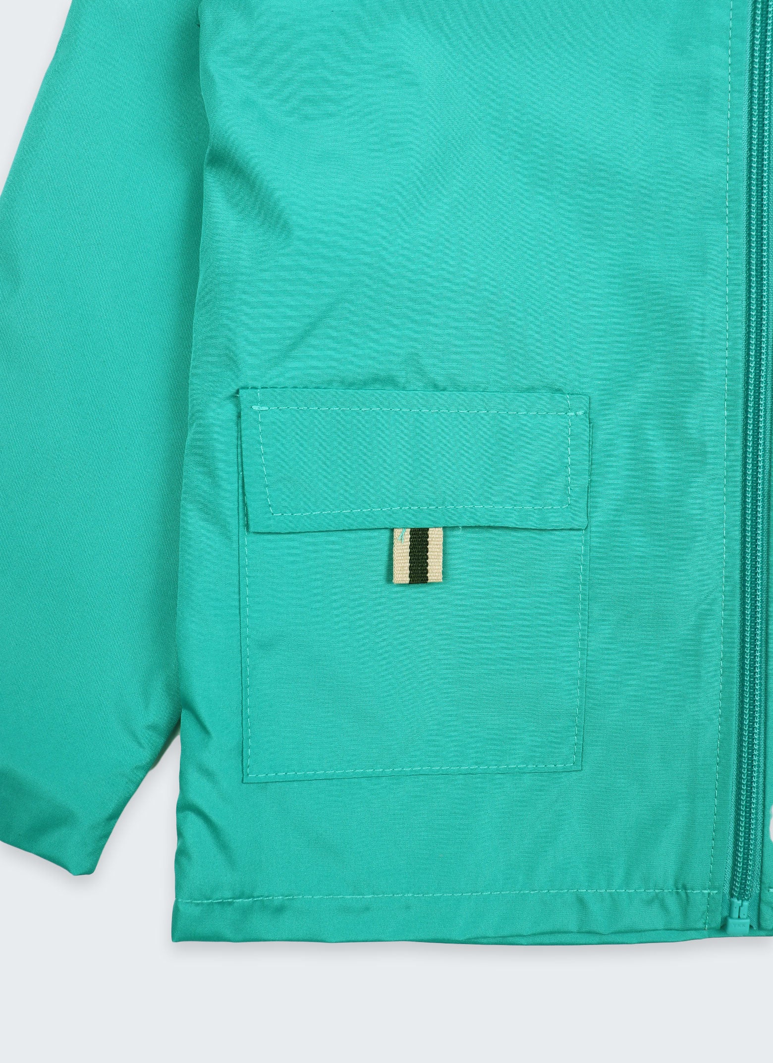 Това яке от шушляк с външен джоб е пролетно-есенен модел с хастар от мек сертифициран памук, OEKO-TEX Standard 100. Ръкавите на якето също са с хастар за да се улесни обличането. Изработихме модела с качулка за ветровитите дни и избрахме закопчаване с цип за лесно обличане. Създадохме якето, за да се чувстват млаките господа комфортно и стилно в училище и навън. Може лесно да съчетавате в спортна или елегантна визия.