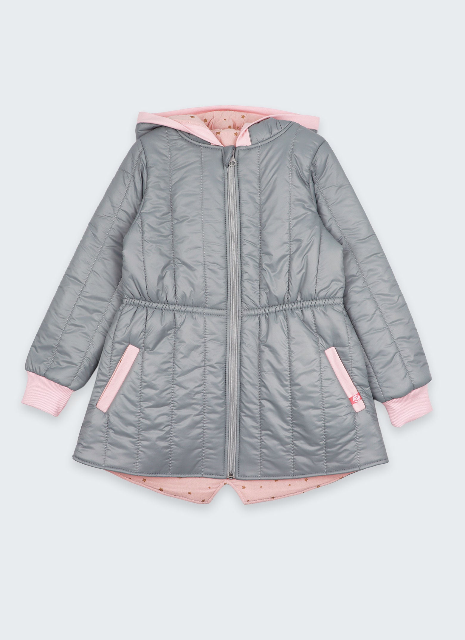Яке с лека вата в сиво и розово